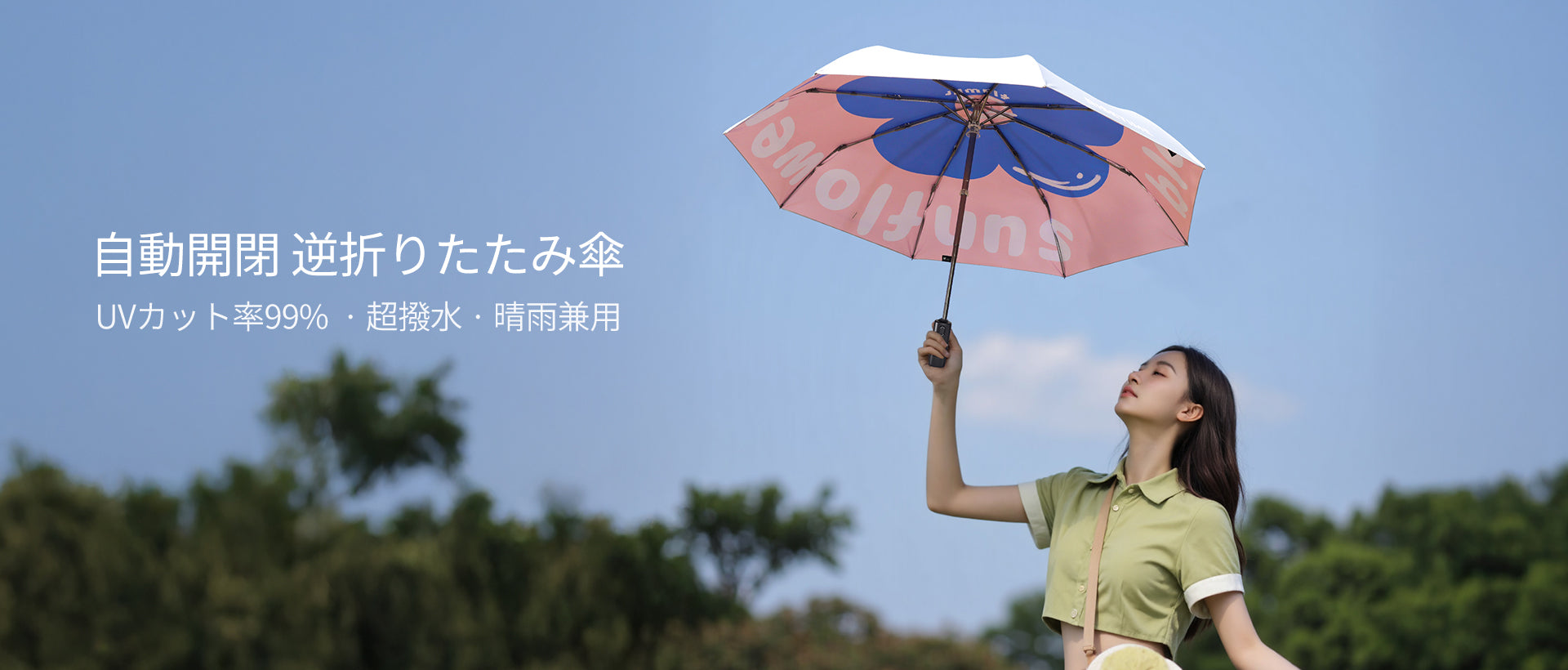 スマートで便利なUVカット機能付き自動開閉式の折りたたみ傘